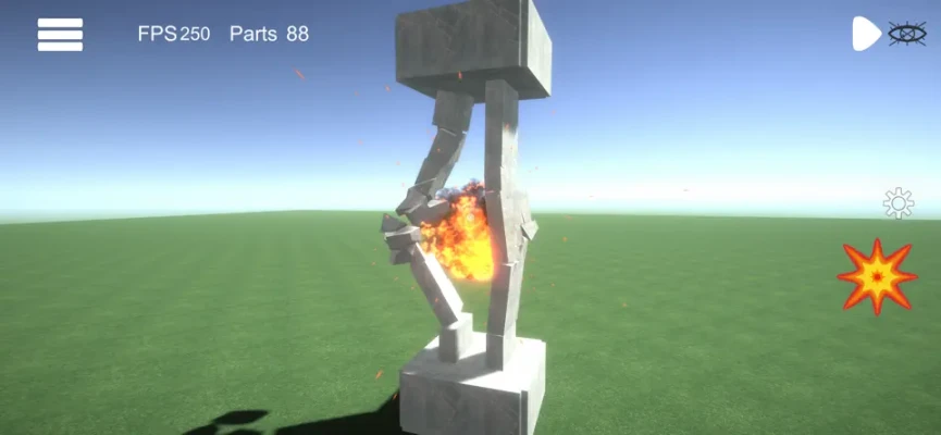 Well, play with low / hight gravity or just turn it off like you are in space ;) • Gameplay controll - Disable or enable explosions visualization (if it covers debris you want to see), only smoke or even lights / flashes. - Too many debris on the screen? Just enable limitation option so all debris over certain value will smoothly dissapear • Guns - Rocket launcher - Earthquake! (Real earth shatter) - Cannon ball • Maps - Destroy over 10+ prebuild map from skyscrapers to ancient structures