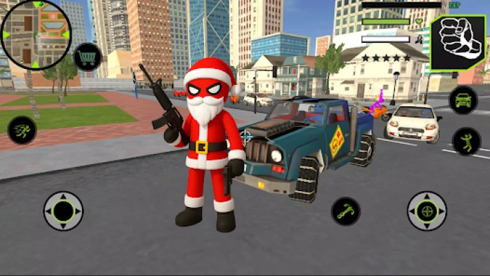 📥 Download Santa Claus Stickman Rope Hero Gangstar Crime now and start your Christmas crime city adventure today!