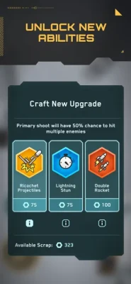 You can launch missiles from your jetpack or fire an electric blast to defeat your enemies. Acquire one-time upgrades that you can craft to make each game session unique.