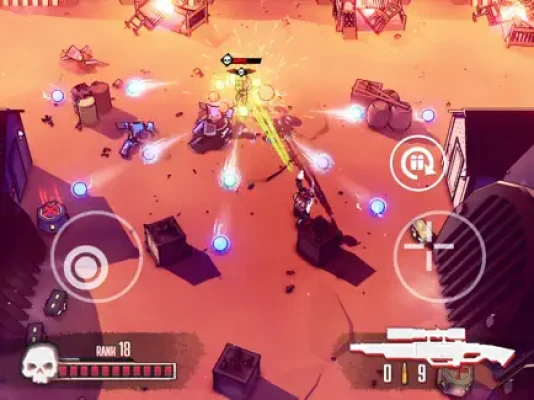 • Shoot, kill, reload, repeat. Enjoy twin-stick action in this shoot 'em up where players spawn at home base, gear-up, upgrade and then pick a mission to fight.
