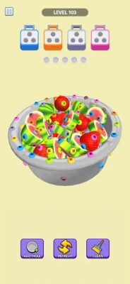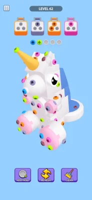 Each model is held together by screws of various colors, and your mission is to collect them wisely, grouping three screws of the same color to break down the structure piece by piece.