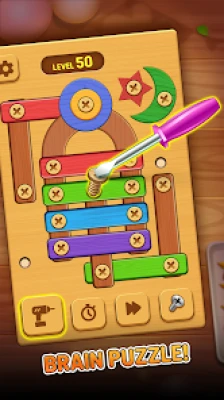 The Wood Nuts Puzzle offers an immersive gameplay experience that combines the mental exercise with endless screw nuts and bolts puzzles entertainment. Each level presents a challenges, requiring you to unscrew pins skills to complete the level under the limited time period assigned. Your mission is to unscrew the bolt of metal plates strategically in correct order to clear the kil stage. From beginner to expert every tangle level in this screw pin puzzle game have something for you to stay connected. So carefully plan your each move because the nuts and bolts screw puzzle spaces are limited. Progress through these challenging puzzle quebra levels to master your logical thinking abilities use the kil boosters available to secure yourself from jam by following the right screw pin game track.