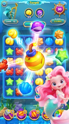The core gameplay is easy to learn but offers surprising depth. Swap colorful sea creatures to create lines of three or more, triggering exciting chain reactions and earning points. As you progress, you'll encounter increasingly intricate levels that will test your matching skills and strategic thinking.