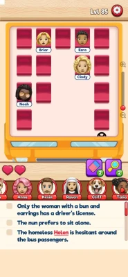 Test your logic in ‘Seat Puzzle - Arrange It’! Solve puzzles by placing characters based on unique rules across fun environments. Get ready for a brain-teasing experience with ‘Seat Puzzle - Arrange It’. In each level, arrange characters by following specific seating rules. Explore varied environments like classrooms, buses, and restaurants as the challenges grow more complex. Features: Hundreds of rule-based puzzles Unique characters to place strategically Settings inspired by real-life scenes Relaxed gameplay with no time pressure A great pick for puzzle fans who enjoy thoughtful challenges. Start solving now!