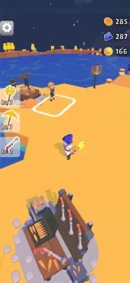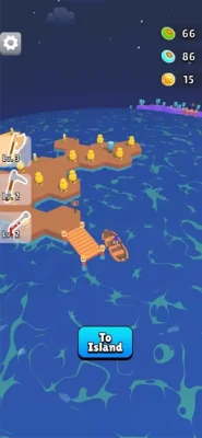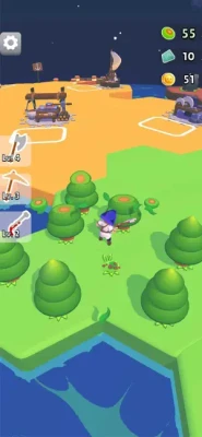 Get your axe and start to move up into the island, gather tree logs along the way and upgrade your tools. Craft your boat and sail to other islands. You need to craft new ships to sail other islands.