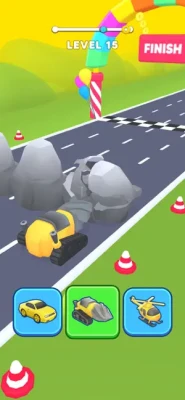 In the Shape Transform Race Game, you have to quickly change the shape of your front to transform the character into different vehicles. If you don't make it in time, you lose and have to start over. The gameplay of shape evolution is simple, just tap on the screen of your mobile device.