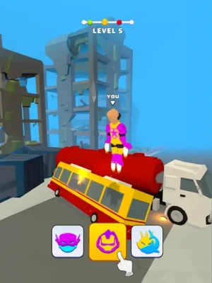 In this game, simply tap the screen to transform and change into different shapes of heroes, such as Aqua Warrior, Amazing Woman, Superheroine, Metal Man, Thunder God, Bat Warrior, Sharp Claw Fighter, enabling you to navigate through the hurdles among the race with ease. Embark on a fast-paced adventure where you'll switch, transform, and change between a range of heroes, and choose your preferred cars including jeepssa, cars, boats, and even airplanes before taking on the race. Each hero transformation presents its own set of obstacles and terrains, requiring quick reflexes and sharp skills to overcome. As you progress through the levels, you'll encounter new challenges that require you to switch and change tactics and choose the right car to race in this game.