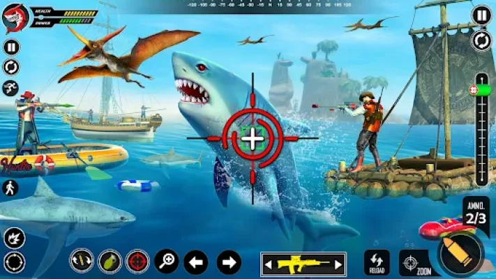- Smooth controls for movements around the sea from shark sniper shooter games.