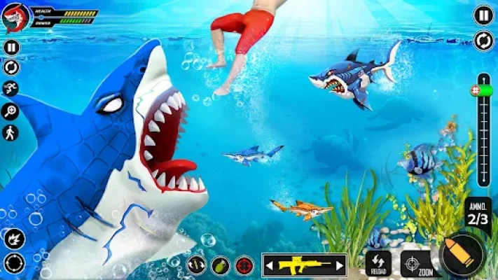 - Highly thrilling Whale Shark Attack FPS Sniper Shooter shark games based play mode