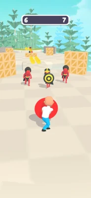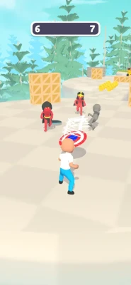 “You get hurt, hurt them back. You get killed... walk it off." Drag to move for aiming and approaching enemies. Swipe to throw the shield and kill them all.