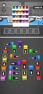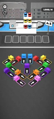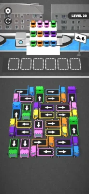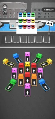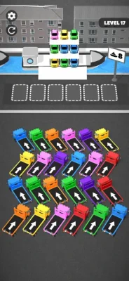 In the game Ferry Jam, you need to load the colorful and differently arranged vehicles on the ship onto the trucks with the correct moves. Each truck can carry three vehicles, and you need to make sure that the trucks have a clear path to exit. Start having fun with a variety of challenging levels!