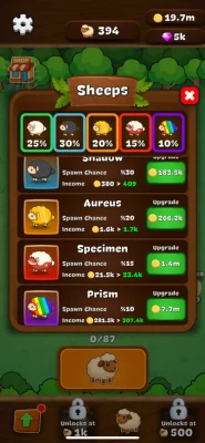 Discover and collect a huge variety of unique sheep – from classic fluffballs to colorful rainbow sheep and many more surprises as you expand your flock from a few sheep to a massive, thriving herd! UPGRADE YOUR IDLE EMPIRE Invest your earnings wisely! Upgrade your sheep for more wool and higher value. Enhance your herder's skills to manage more sheep efficiently. Improve your pens, unlock new pastures and special zones with your earnings, and build new facilities through the SHOP to maximize your profits. Watch your idle income multiply as you become a true sheep tycoon! EARN WHILE YOU ARE AWAY Your wool empire never sleeps! Shleep! is a true idle clicker game, meaning you continue to earn offline rewards and passive income even when you are not playing. Come back to piles of cash and wool, ready for your next big upgrade. Perfect for AFK progress and steady growth! SIMPLE, ADDICTIVE, AND FUN With easy-to-learn clicker gameplay, tons of upgrades to discover, adorable sheep to collect, and satisfying automation, Shleep! - Idle Clicker offers endless hours of relaxing yet engaging fun. Watch your little farm grow into a massive sheep operation! Ready to build the biggest, richest sheep farm the world has ever seen? Download Shleep! - Idle Clicker now and start your journey to becoming an idle legend today!