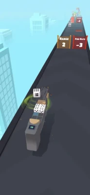 -Collect the dice and upgrade your weapons. -Shoot and get to the finish line
