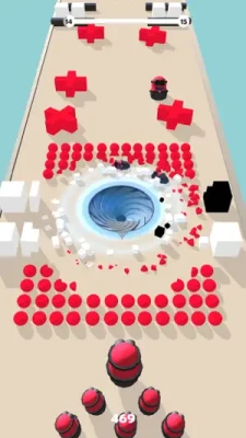Pull all the obstacles into the hole to save the boss. Smash everything at your fingertips.