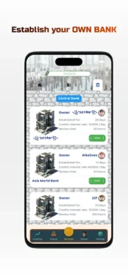 Open your own bank to lend money or borrow funds to expand your empire. Manage your finances wisely for long-term success and market domination.
