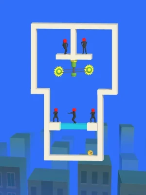Master the art of physics to interact with objects and overcome obstacles, adding an extra layer of strategy to your conquest. The superhero league battles intensify as enemies equip guns, challenging you to incorporate Mr. Bullet's precision and Mr. Ninja's agility into your tactics for a thrilling experience.