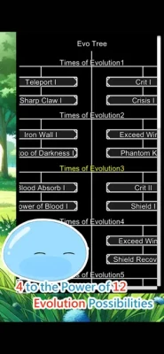 1. Slime can evolve 12 times, and there are 4 to the power of 12 evolution possibilities.