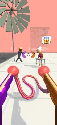 Use your plungers in creative ways to take down the bad guys. Shoot one side at one object, the other at a moving object and watch as they pull each other.
