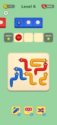Your goal is to untangle the snakes by placing each one in its matching box.