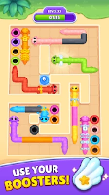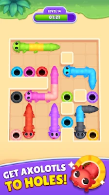 Your goal is simple: guide a cast of cute, stretchy creatures through winding paths to their matching colored holes. It's easy to learn but offers a real challenge!