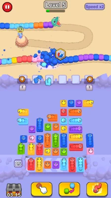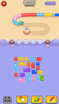 This is a super casual puzzle game! Your core goal is to repel the advancing giant snakes to protect the snake eggs at the finish line. The key to victory lies in the unique color puzzle mechanics. Click on the small snakes that match the color of the giant snake to accurately destroy it with a cannonball. But be careful, there are only 6 slots for the small snakes. If the slots are full and no one matches the color of the giant snake, the game ends! As the levels advance, the giant snakes become faster and their color patterns become more complex. You must make quick decisions and flexibly deploy the small snakes to repel the giant snake in a fast-paced game. Experience the dual-tasting thrill of color matching and resource management!