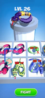 Strategize, merge, and evolve your way to becoming the ultimate serpent! Features: Dynamic Tracks: Navigate challenging environments and grow your snake by eating smaller ones. Merge Board: Strategically merge snakes to create powerful evolutions. Freeplay Mode: Explore expansive terrains, devour enemies, and capture huts. 35 Unique Snakes: Discover and evolve a variety of snakes, each with unique abilities. Addictive Gameplay: Enjoy a blend of strategy, action, and growth that keeps you engaged. Download now and embark on a thrilling evolution adventure!