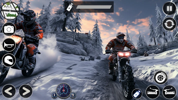 • Beat AI biker opponents in the snow mountain moto Rally 2022