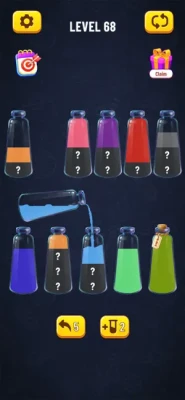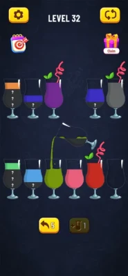 Soda Sort Puzzle is a fun and addictive puzzle game! Try to sort the colored water in the glasses until all colors in the same glass.