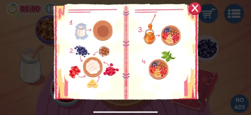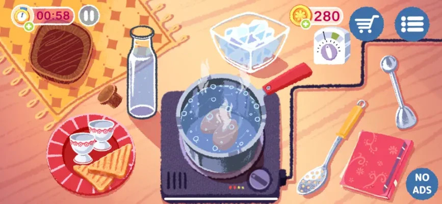The player has to prepare the dishes according to the recipe. This requires the player to be logical and experiment in the cooking process. The player will have to collect stars and achievements, improve their cooking skills, and advance the story of the game.