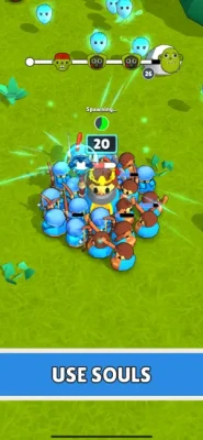 In Soul War!, your adventure kicks off by gathering souls from fallen enemies. With these souls, you can spawn powerful bean warriors who will fight by your side.