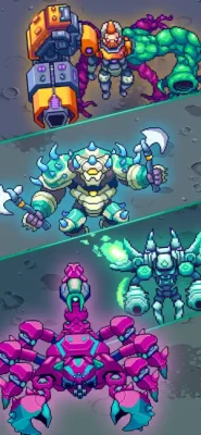 Its retro pixel style combined with hero evolution and modern progression systems.