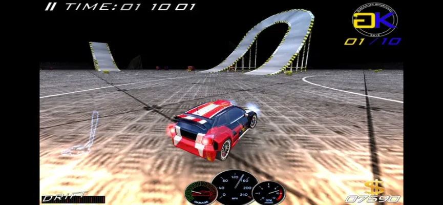 "GYMKHANA" Learn to mastered your car on unusual tracks! Impressive acrobatics await you: Looping, Steering, Drift and more!