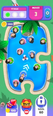 The angle and speed at which the ball is launched are determined based on the direction of the drag. The main objective for players is to clear same-colored balls by causing them to collide. Balls disappear upon collisions, and players earn points. Each level provides a limited number of moves to clear a specific color combination. Tasks are defined in each level based on the number and arrangement of balls that need to be cleared, while difficulty levels increase with fewer available moves or more balls to deal with.