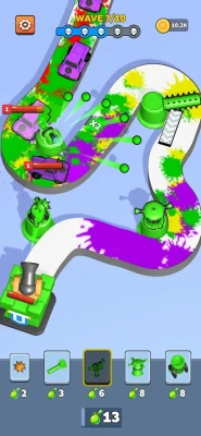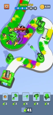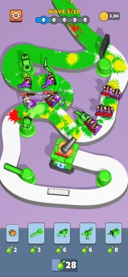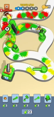 which fires bullets at breakneck speed, the Splash Gun for area attacks, the Big Cannon for destructive impact, or the Boomerang to strike multiple enemies with a single throw, and many more! Explosive Paint and Progression: Each enemy you defeat explodes into a vibrant splash of paint, a visual explosion that adds a fun and satisfying touch to each victory. By eliminating enemies, you earn coins that allow you to buy new weapons, upgrade existing ones, and improve your base turret and castle to better withstand the upcoming waves. Numerous Levels and Challenges: The game features a variety of fun and dynamic levels, each with specific elements that add extra challenges. Enemies may multiply at lightning speed with the Multiplier (be sure to kill them before they duplicate!), or become faster with the Accelerator, increasing the game’s difficulty. Teleporters add an element of surprise by making enemies appear at random locations on the map. Strategy and Decision-Making: Choosing between traps or weapons to place on the battlefield requires strategic thinking. Each weapon has its strengths and weaknesses, and you will need to use and position them wisely to counter enemy waves and protect your castle. Make sure to manage your resources efficiently and anticipate the upcoming challenges to avoid being overwhelmed.