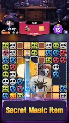 Join the Halloween witch and start your spooky match-3 adventure today!