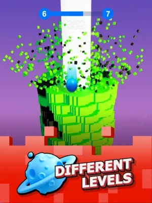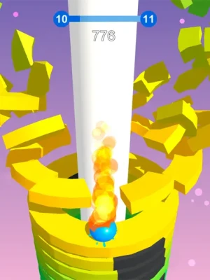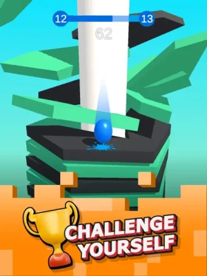 Your ball smashes like a brick through colorful platforms that block its descent, but if you hit a black one, it's all over! Your ball shatters to pieces and you have to start your fall all over again.