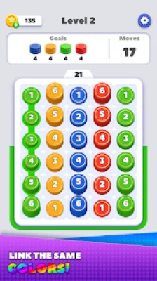 Connect coins of the same color and stack them up to 10 or more!