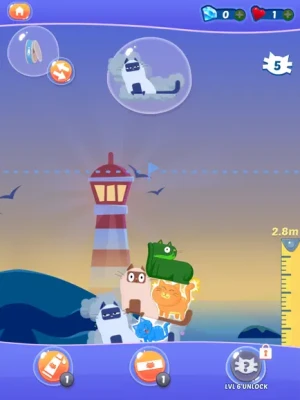 Gain XP by beating a range of cat stacking levels! Can you reach the skies?