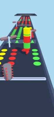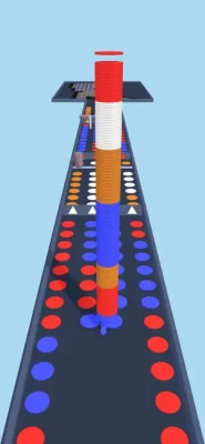 While running in the game, jumping areas will appear in front of you, look carefully at the color of the arrows in this area. After leaving the jump zone, you must collect tiles of that color or you will lose your stacks.