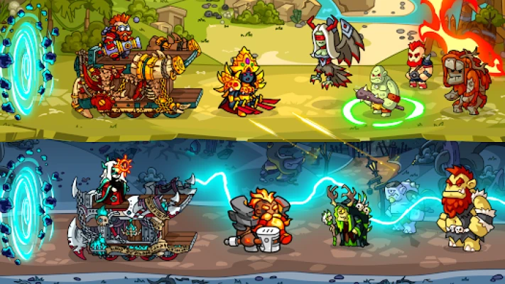 Outsmart your opponent in tower war by deploying cunning tactics to conquer their defenses and reign supreme. Expand your zone of influence and conquer the lands of your enemies! Magic portals will transport you to the far-away lands. From winter mountains to warm seashores - each location is unique and exciting.