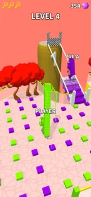 Materials for the bridge are spawned on the ground. Collect logs of your color, choose a stair, place them to build yours, and get to the finish line before others build the stair and win the race!