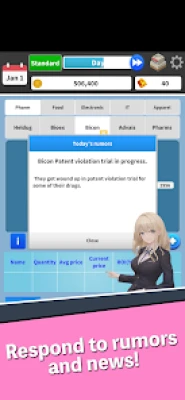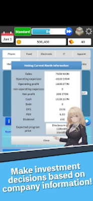 Stocks - Invest considering economic indicators, corporate market shares, and sales. Rumors and news will either provide opportunities or adversities. Whether you invest short-term or long-term, the choice is yours. And if you accumulate a lot of money, become the largest shareholder of a company and directly invest in its technology and marketing to increase its market share (activates largest shareholder mode when holding over 50% of the company's shares).