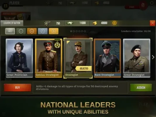 - National leaders: choose from dozens of historical figures and use their unique bonuses.