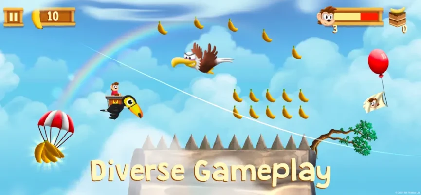 Meet new animal friends during the journey across the country like Tony the Toucan, and fly through the sky world with his support. Outrun and defeat animal enemies and monsters, such as crocodile, hedgehog, donkey, bat and piranha. Also try out the donkey kick to briefly fly through the sky and collect more bananas. Overcome dangerous obstacles like spike balls and boiling lava. Collect fruits like strawberry and mango to refill your energy and collect stars to become invincible. Complete a challenging Gorilla Boss Fight every 5 levels to outrun Gombo and recover more of your banana savings and be well prepared for the winter! Collect also bananas to upgrade Migo throughout the adventure with crazy minecart upgrades, weapon add-ons, super power-ups and cool outfits! Collect 3 super bananas to enter the bonus stage in each level. The fate of the country’s jungle is in your hands! FEATURES: + Easy Control with two Controls Options: 1) Tap and Swipe to play with one hand (One Thumb Controls) 2) Use on-screen virtual Joypad Buttons + Adjustable game speed in Tap and Swipe mode + Game Center Leaderboards to compete with your friends! + Daily Reward Lucky Wheel with tons of prizes + Beautiful hand-drawn, high-resolution graphics in classic style + iPhone widescreen display support, as well as 16:9 and iPad aspect ratio support + Addictive fun game play! Need technical support or want to send suggestions?