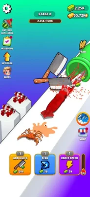 Upgrade Your Knife: Collect points to upgrade and sharpen your knife, unlocking smoother cuts and more challenging levels. You can collect offline earnings while away