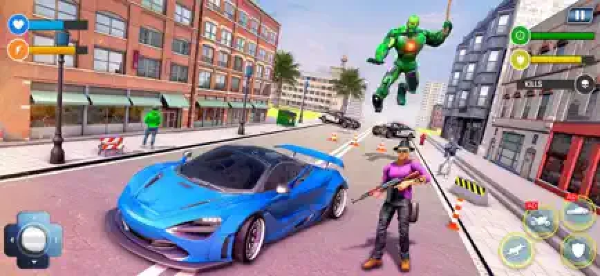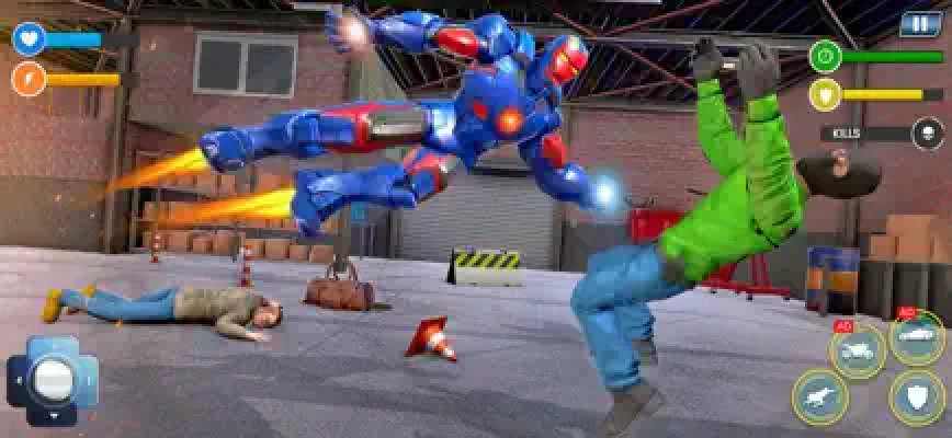 Gangsters of mafia crime city have created chaos and Miami police isn’t enough to fight them. For super city rescue mission flying robot captain robot transformation into robot car and robot bike with futuristic robot battle will save super mafia crime city and help US Police in city survival rescue games.