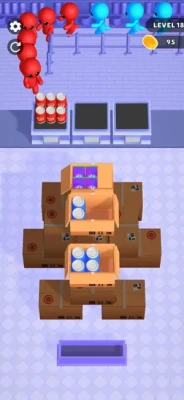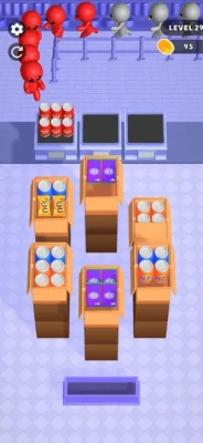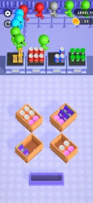 Welcome to the craziest supermarket in the colorful world! Dive into a fast-paced puzzle adventure game where you sort the identical goods into a single box and deliver them to the same colored stickman customers waiting in the checkout line. Use your quick reflexes and strategic thinking to solve each level by clearing the area with each perfectly sorted boxes. Satisfy your customers by delivering the correct items. Face new challenges at every level, exercise your brain, and relieve stress as you create order from this chaotic supermarket. Download now and enjoy the thrill of solving this fun and challenging game!