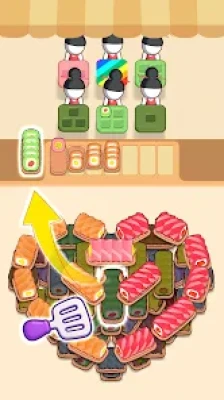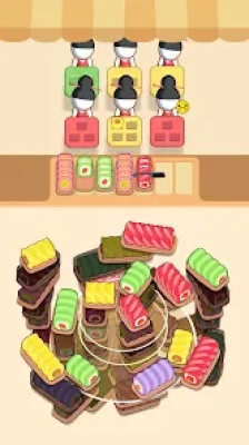 Navigate through a table overflowing with layered sushi and sushi rolls using sort puzzle logic in sushi sort - select sushi types vertically to complete customer requests. Strategize like a slice master: carefully manage limited counter space while slicing through layers. Every move in cutting games matters - maintain free space to prevent overflow as a skilled sushi maker! As levels intensify, master the art of swift decisions while keeping patrons happy in sushi sort challenges.