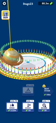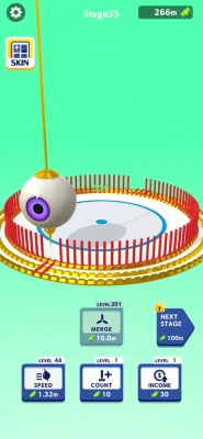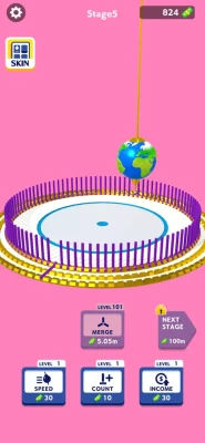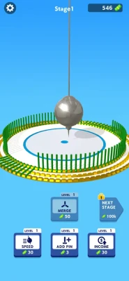 Let's swing the pendulum and knock down the pin! Let's swing the pendulum and knock down the pin! The more pins you have, the more money you make!