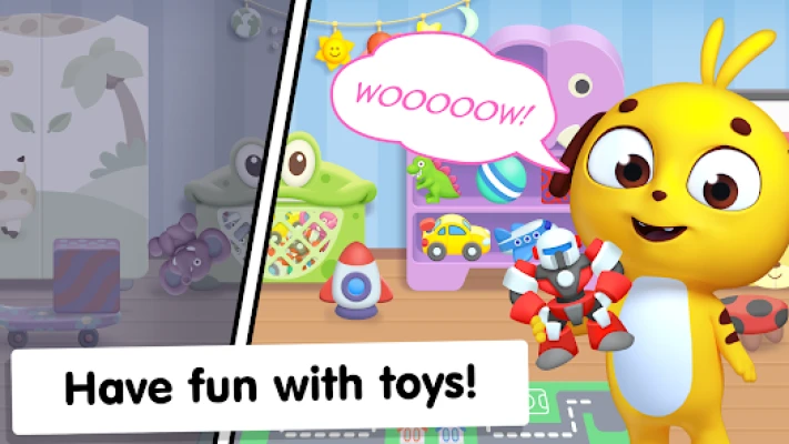 Pretend play with Tabi is so much fun! Pick out a new outfit for him, change his look, and put your favorite clothes in the wardrobe.